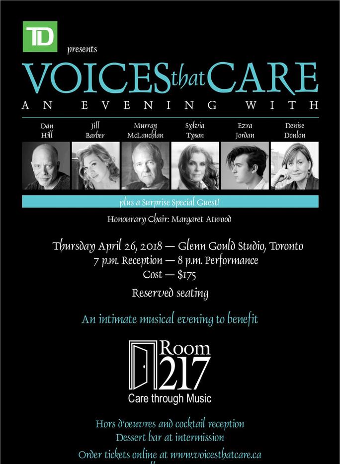 Room 217 Foundation is hosting the Voices that Care benefit concert at Glenn Gould Studio on April 26!