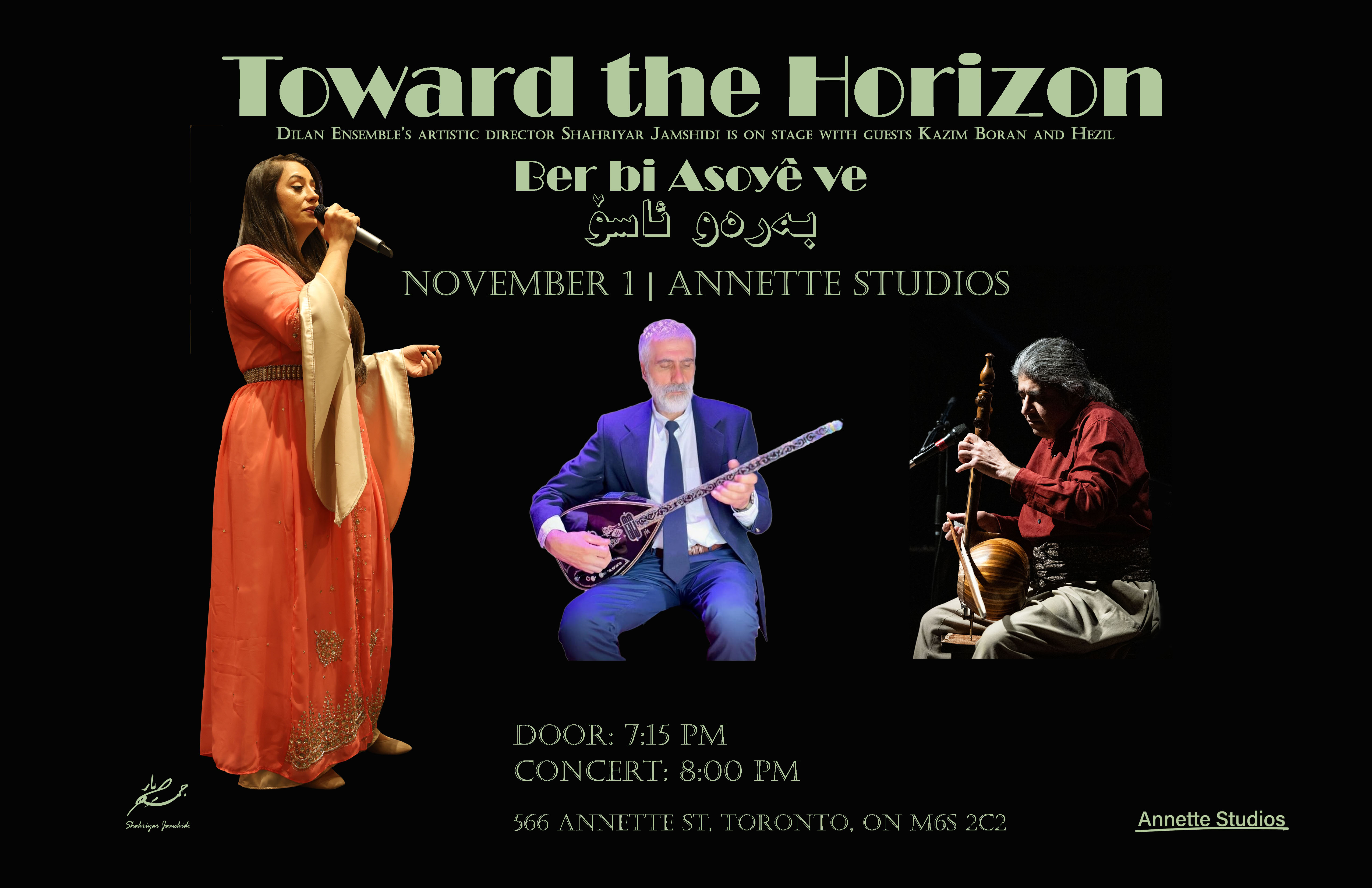 The two Toronto-based Kurdish artist guests, Kazim Boran, Saz (Baglama) and Hezil, vocals, will join Dilan Ensemble, directed by the Kurdish-Canadian kamānche player, composer and singer Shahriyar Jamshidi, to resonate songs from various parts of Kurdistan in their trio concert at Annette Studios. With the power of improvisation rooted in Kurdish traditions, they can cross the boundaries of musical genres and create a spontaneous musical momentum that penetrates from the soul of the musicians to the heart and soul of the listeners.