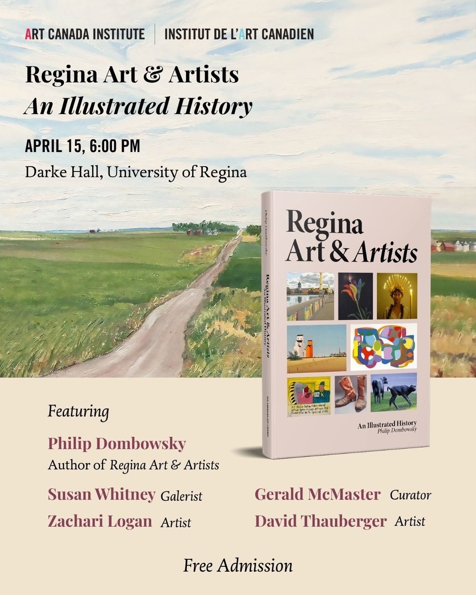 A presentation featuring gallerist Susan Whitney and artists Zachari Logan, Gerald McMaster, and David Thauberger in conversation with Philip Dombowski, author of the newly published Regina Art & Artists: An Illustrated History.